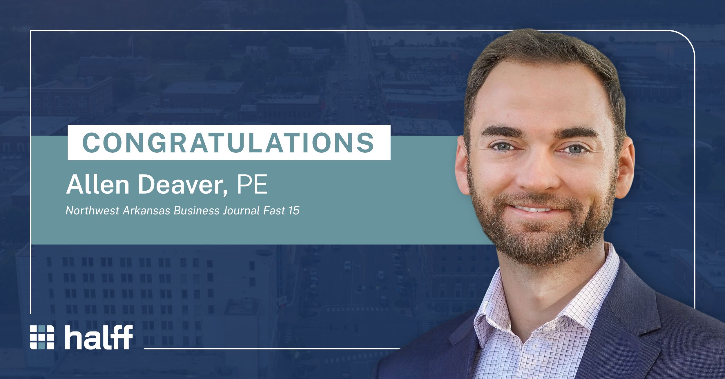 Fort Smith, Ark. — Halff Public Works Team Leader Allen Deaver, PE, was named to Northwest Arkansas Business Journal’s 2025 Fast 15.